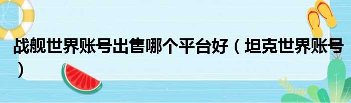 战舰世界账号出售哪个平台好(坦克世界账号)