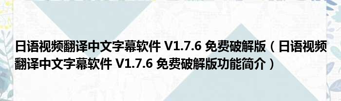 日语视频翻译中文字幕软件 V1.7.6 免费破解版(日语视频翻译中文字幕软件 V1.7.6 免费破解版功能简介)