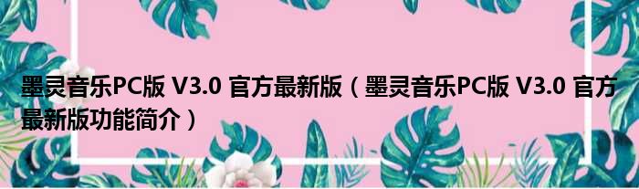 墨灵音乐PC版 V3.0 官方最新版(墨灵音乐PC版 V3.0 官方最新版功能简介)