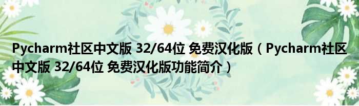 导读 大家好,关于Pycharm社区中文版 32 64位 免费汉化版,Pycharm社区中文版 32 64位 免费汉化版功能简介这个很多人还不知道,小勒来为大家解