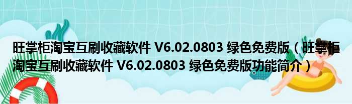 旺掌柜淘宝互刷收藏软件 V6.02.0803 绿色免费版(旺掌柜淘宝互刷收藏软件 V6.02.0803 绿色免费版功能简介)