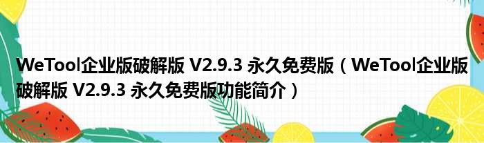 导读 大家好,关于WeTool企业版破解版 V2 9 3 永久免费版,WeTool企业版破解版 V2 9 3 永久免费版功能简介这个很多人还不知道,小勒来为大家解