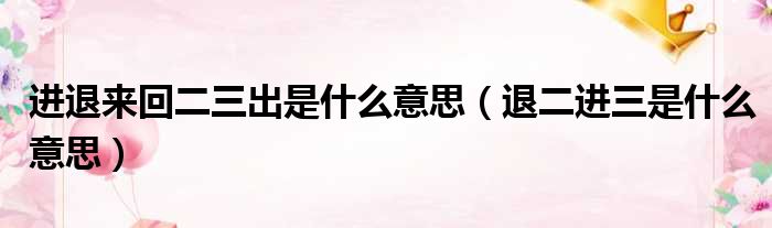 导读 大家好,今天小六子来为大家解答以下的问题,关于进退来回二三出是什么意思,退二进三是什么意思这个很多人还不知道,现在让我们一起来看看