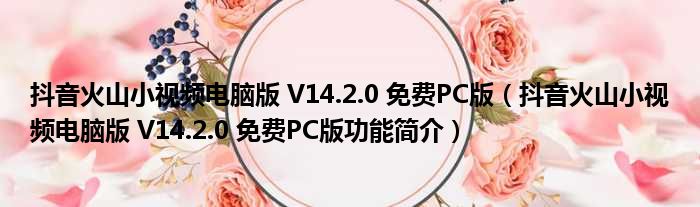 抖音火山小视频电脑版 V14.2.0 免费PC版(抖音火山小视频电脑版 V14.2.0 免费PC版功能简介)