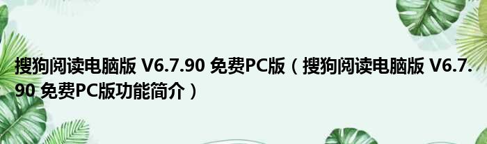 搜狗阅读电脑版 V6.7.90 免费PC版(搜狗阅读电脑版 V6.7.90 免费PC版功能简介)