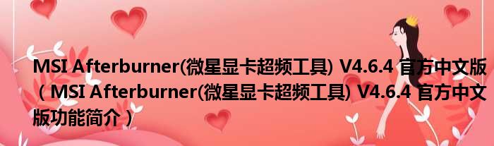 MSI Afterburner(微星显卡超频工具) V4.6.4 官方中文版(MSI Afterburner(微星显卡超频工具) V4.6.4 官方中文版功能简介)
