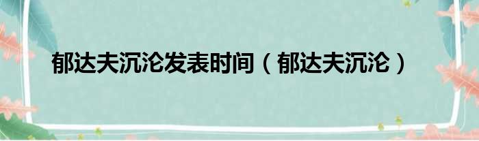 郁达夫沉沦发表时间(郁达夫沉沦)