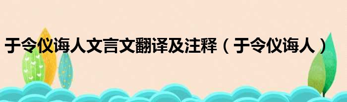 于令仪诲人文言文翻译及注释(于令仪诲人)