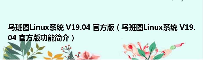 乌班图Linux系统 V19.04 官方版(乌班图Linux系统 V19.04 官方版功能简介)