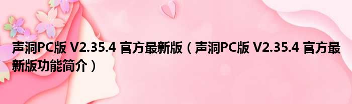 声洞PC版 V2.35.4 官方最新版(声洞PC版 V2.35.4 官方最新版功能简介)