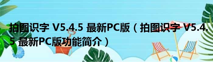 拍图识字 V5.4.5 最新PC版(拍图识字 V5.4.5 最新PC版功能简介)