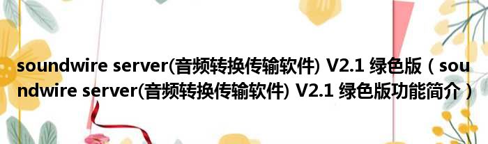 soundwire server(音频转换传输软件) V2.1 绿色版(soundwire server(音频转换传输软件) V2.1 绿色版功能简介)