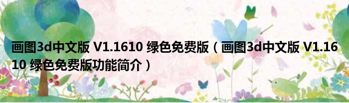 画图3d中文版 V1.1610 绿色免费版(画图3d中文版 V1.1610 绿色免费版功能简介)
