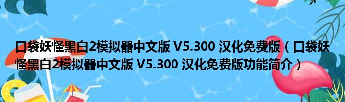 大家好,关于口袋妖怪黑白2模拟器中文版 V5.300 汉化免费版,口袋妖怪黑白2模拟器中文版 V5.300 汉化免费版功能简介这个很多人还不知道,小勒来为大家解答以上的问题,现在让我们一起来看看吧!
