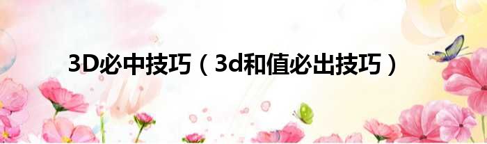 导读 大家好,今天小六子来为大家解答以下的问题,关于3D必中技巧,3d和值必出技巧这个很多人还不知道,现在让我们一起来看看吧!1、有几个注意点