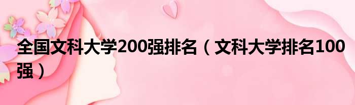 大家好,今天小六子来为大家解答以下的问题,关于全国文科大学200强排名,文科大学排名100强这个很多人还不知道,现在让我们一起来看看吧!
