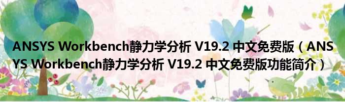 ANSYS Workbench静力学分析 V19.2 中文免费版(ANSYS Workbench静力学分析 V19.2 中文免费版功能简介)