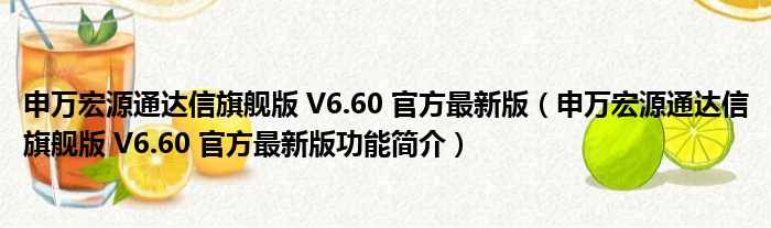 导读 大家好,关于申万宏源通达信旗舰版 V6 60 官方最新版,申万宏源通达信旗舰版 V6 60 官方最新版功能简介这个很多人还不知道,小勒来为大家
