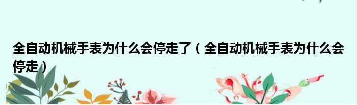 全自动机械手表为什么会停走了(全自动机械手表为什么会停走)