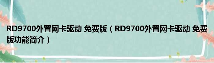 RD9700外置网卡驱动 免费版(RD9700外置网卡驱动 免费版功能简介)