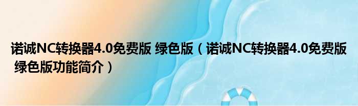 诺诚NC转换器4.0免费版 绿色版(诺诚NC转换器4.0免费版 绿色版功能简介)