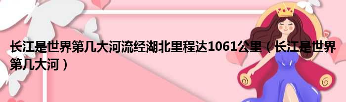 导读 大家好,今天小六子来为大家解答以下的问题,关于长江是世界第几大河流经湖北里程达1061公里,长江是世界第几大河这个很多人还不知道,现在