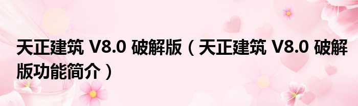 天正建筑 V8.0 破解版(天正建筑 V8.0 破解版功能简介)