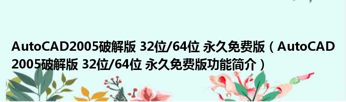 AutoCAD2005破解版 32位/64位 永久免费版(AutoCAD2005破解版 32位/64位 永久免费版功能简介)