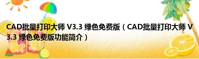 CAD批量打印大师 V3.3 绿色免费版(CAD批量打印大师 V3.3 绿色免费版功能简介)