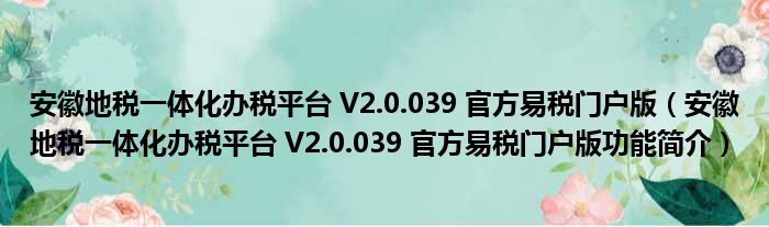 安徽地税一体化办税平台 V2.0.039 官方易税门户版(安徽地税一体化办税平台 V2.0.039 官方易税门户版功能简介)