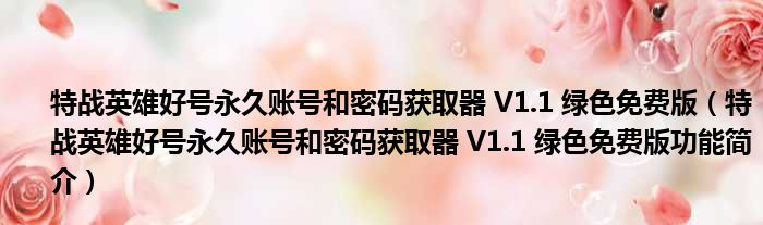 特战英雄好号永久账号和密码获取器 V1.1 绿色免费版(特战英雄好号永久账号和密码获取器 V1.1 绿色免费版功能简介)