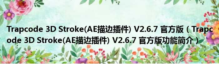 Trapcode 3D Stroke(AE描边插件) V2.6.7 官方版(Trapcode 3D Stroke(AE描边插件) V2.6.7 官方版功能简介)