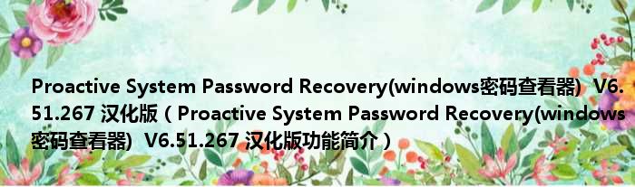 Proactive System Password Recovery(windows密码查看器) V6.51.267 汉化版(Proactive System Password Recovery(windows密码查看器) V6.51.267 汉化版功能简介)