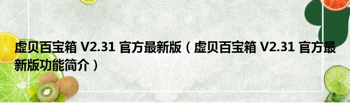 虚贝百宝箱 V2.31 官方最新版(虚贝百宝箱 V2.31 官方最新版功能简介)