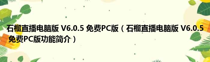 石榴直播电脑版 V6.0.5 免费PC版(石榴直播电脑版 V6.0.5 免费PC版功能简介)