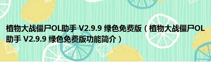 植物大战僵尸OL助手 V2.9.9 绿色免费版(植物大战僵尸OL助手 V2.9.9 绿色免费版功能简介)
