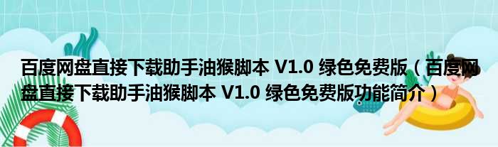 百度网盘直接下载助手油猴脚本 V1.0 绿色免费版(百度网盘直接下载助手油猴脚本 V1.0 绿色免费版功能简介)
