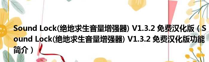 Sound Lock(绝地求生音量增强器) V1.3.2 免费汉化版(Sound Lock(绝地求生音量增强器) V1.3.2 免费汉化版功能简介)