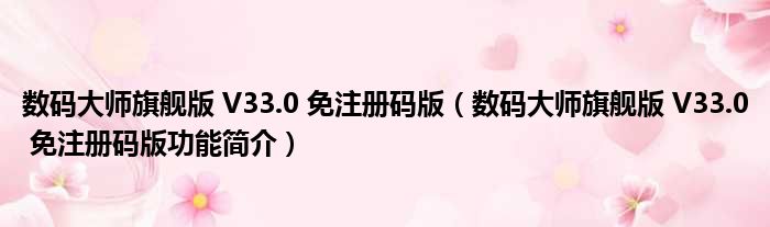 数码大师旗舰版 V33.0 免注册码版(数码大师旗舰版 V33.0 免注册码版功能简介)