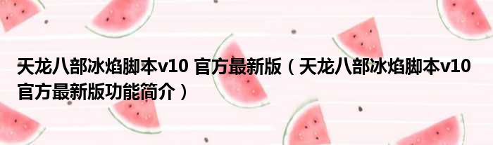 天龙八部冰焰脚本v10 官方最新版(天龙八部冰焰脚本v10 官方最新版功能简介)
