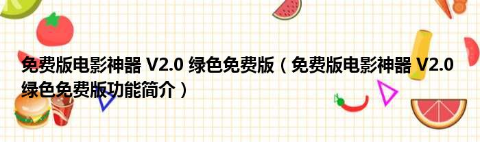 免费版电影神器 V2.0 绿色免费版(免费版电影神器 V2.0 绿色免费版功能简介)