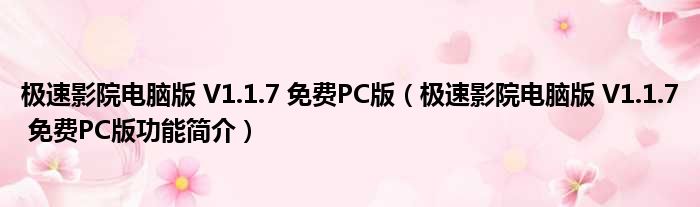 极速影院电脑版 V1.1.7 免费PC版(极速影院电脑版 V1.1.7 免费PC版功能简介)
