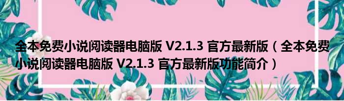 导读 大家好,关于全本免费小说阅读器电脑版 V2 1 3 官方最新版,全本免费小说阅读器电脑版 V2 1 3 官方最新版功能简介这个很多人还不知道,小