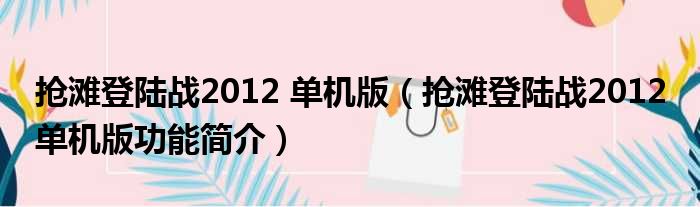 抢滩登陆战2012 单机版(抢滩登陆战2012 单机版功能简介)