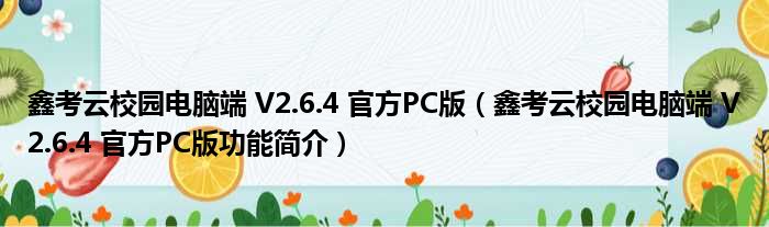 鑫考云校园电脑端 V2.6.4 官方PC版(鑫考云校园电脑端 V2.6.4 官方PC版功能简介)