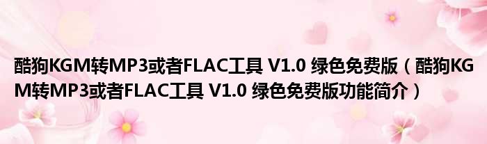 酷狗KGM转MP3或者FLAC工具 V1.0 绿色免费版(酷狗KGM转MP3或者FLAC工具 V1.0 绿色免费版功能简介)