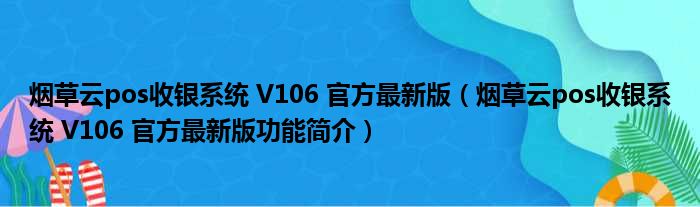烟草云pos收银系统 V106 官方最新版(烟草云pos收银系统 V106 官方最新版功能简介)