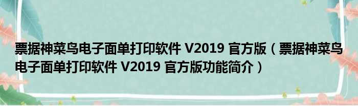 导读 大家好,关于票据神菜鸟电子面单打印软件 V2019 官方版,票据神菜鸟电子面单打印软件 V2019 官方版功能简介这个很多人还不知道,小勒来为