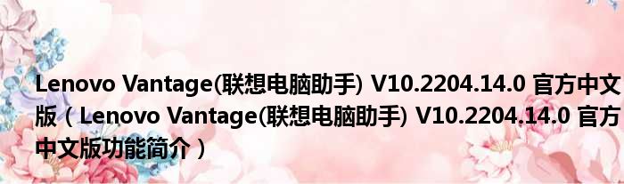 Lenovo Vantage(联想电脑助手) V10.2204.14.0 官方中文版(Lenovo Vantage(联想电脑助手) V10.2204.14.0 官方中文版功能简介)