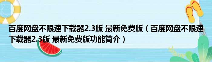 百度网盘不限速下载器2.3版 最新免费版(百度网盘不限速下载器2.3版 最新免费版功能简介)